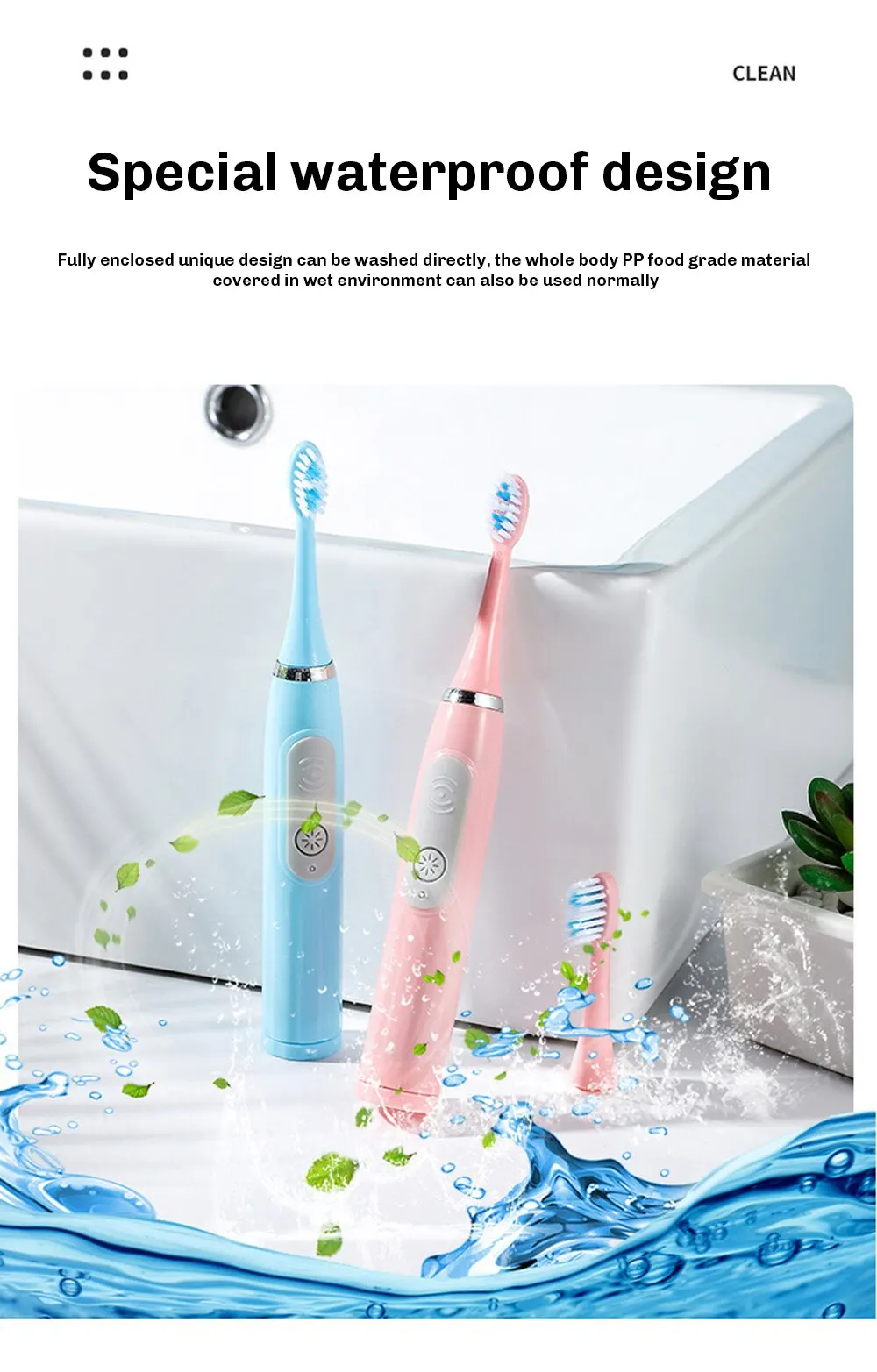 • Waterproof :The toothbrush is waterproof, making it easy to use in the shower or bath without damaging the device.