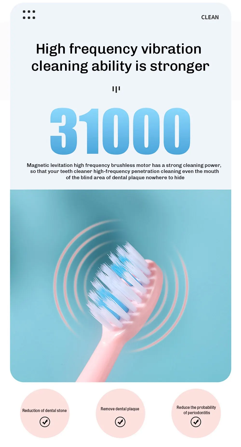 • Deep cleaning mode :The toothbrush has a deep cleaning mode that removes plaque and promotes healthy teeth and gums.