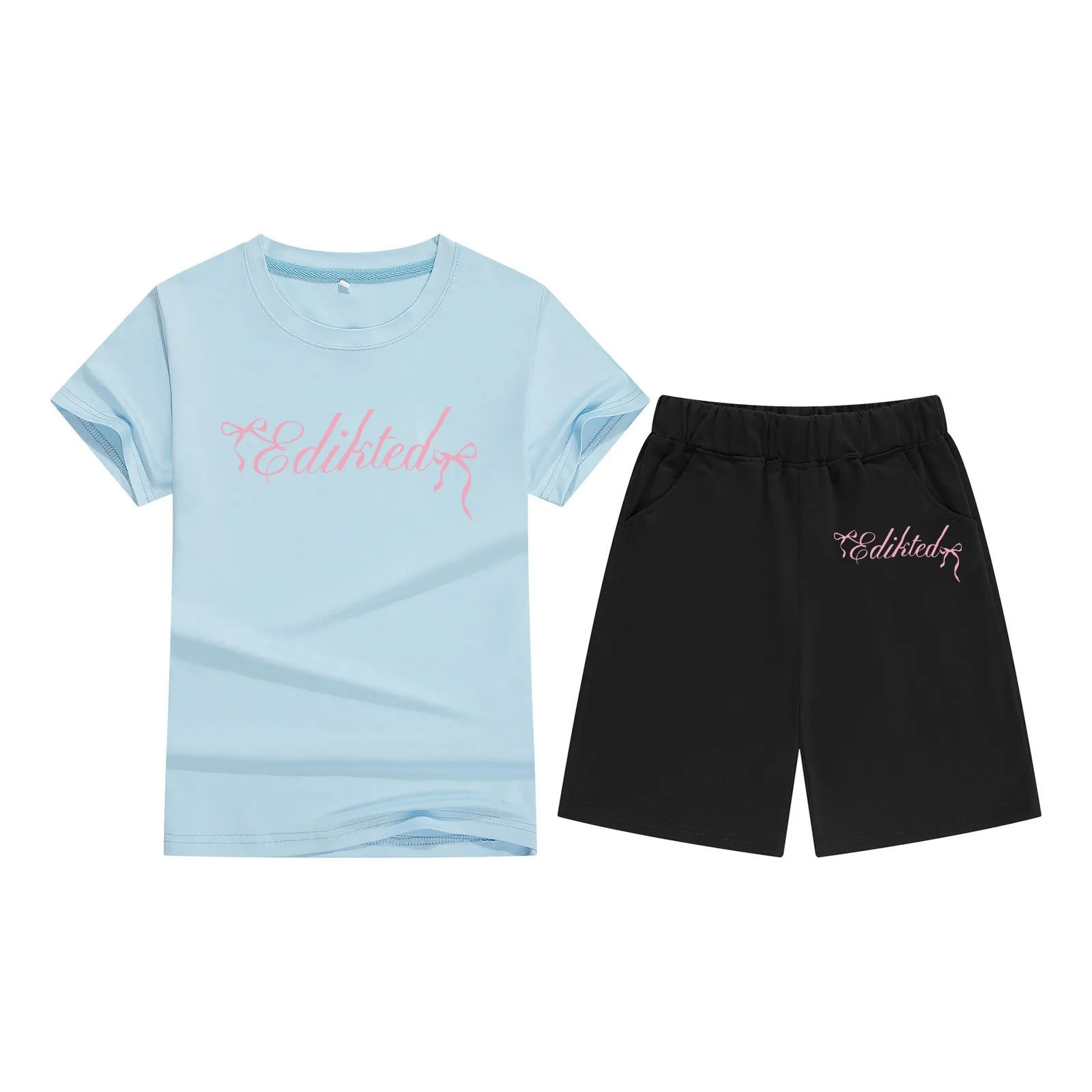 Size:140 Bust:80cm/31.50” Sleeve:17cm/6.69” Length:55cm/21.65” Waist:50cm/19.69” Shorts Length:42cm/16.54” Recommend age:8-9 Years