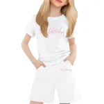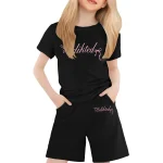 Size:150 Bust:84cm/33.07” Sleeve:18cm/7.09” Length:60cm/23.62” Waist:52cm/20.47” Shorts Length:44cm/17.32” Recommend age:10-11 Years