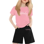 Size:120 Bust:72cm/28.35” Sleeve:15cm/5.91” Length:45cm/17.72” Waist:46cm/18.11” Shorts Length:38cm/14.96” Recommend age:4-5 Years