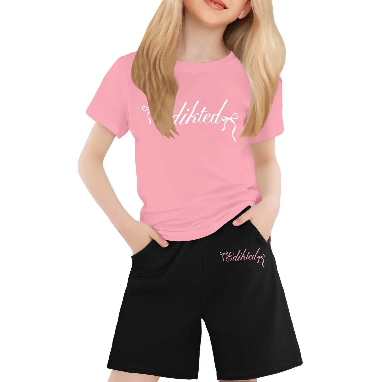 Children’s Short Sleeve Bow Print Candy Color Comfy Children’s Round Neck T Shirt